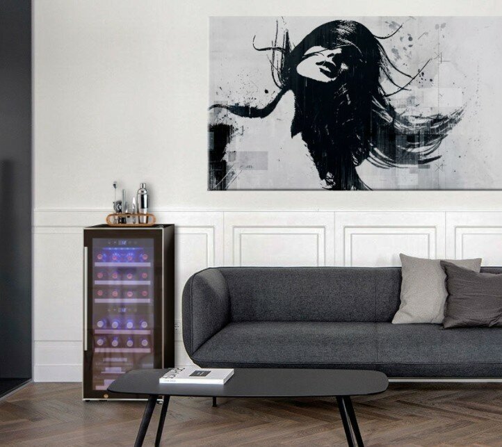 Wine cabinet type: two-temperature, height: 87 cm, width: 39.50 cm, depth: 54.50 cm, wine cabinet capacity, bottles: 24, number of chambers: 2, energy efficiency class: B, cabinet color: black
