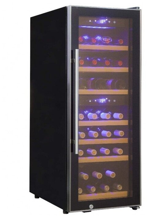 Wine cabinet type: two-temperature, height: 103 cm, width: 39.50 cm, depth: 63 cm, wine cabinet capacity, bottle: 38, number of chambers: 1, energy class: C, compressor type: standard, housing color: silver