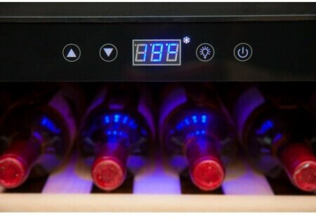 Wine cabinet type: two-temperature, height: 104.50 cm, width: 59.50 cm, depth: 63.50 cm, wine cabinet capacity, bottles: 66, number of chambers: 1, energy efficiency class: C, compressor type: standard, cabinet color: black