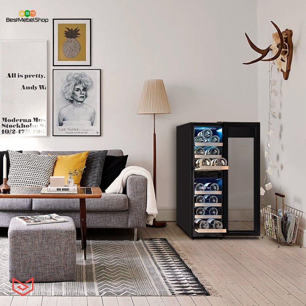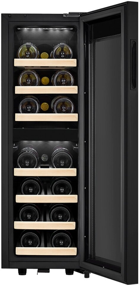 Wine cabinet type: two-temperature, height: 88 cm, width: 29.50 cm, depth: 57 cm, wine cabinet capacity, bottles: 19, number of chambers: 2, energy efficiency class: A, cabinet color: black
