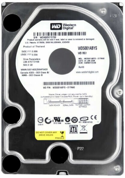 Capacity: 500 GB, form factor: 3.5, purpose: server, type: HDD, rotation speed: 7200 rpm, interfaces: SATA 3Gb/s, features: NCQ
