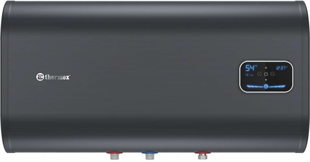 Display, connection to a standard socket, remote control, thermometer, smartphone control