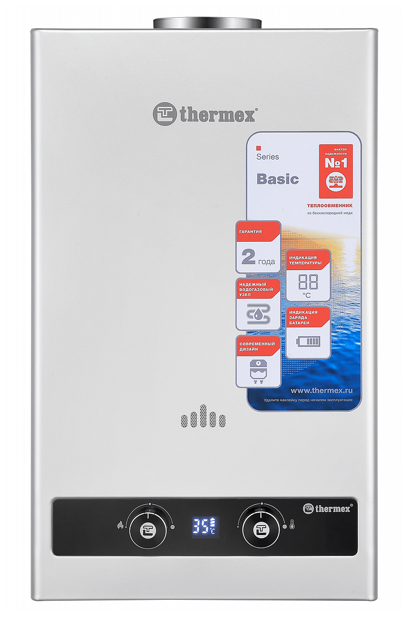 Description: Type of water heater: instantaneous, heating method: gas, installation: wall-mounted, vertical, location: vertical, connection: bottom, inner lining of the tank: metal, power consumption: 20 kW, depth: 188 mm, width