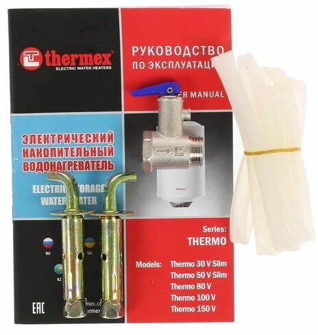 Type of water heater: accumulative, tank volume: 100 l, heating method: electric, installation: wall-mounted, position: vertical, connection: bottom, inner lining of the tank: glass-ceramic, mains voltage: 220, consumption