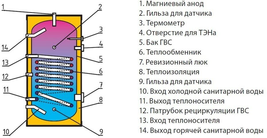 Type of water heater: accumulative, tank volume: 100 l, heating method: indirect, installation: floor, position: vertical, depth: 490 mm, width: 490 mm, height: 1080 mm, features: thermometer