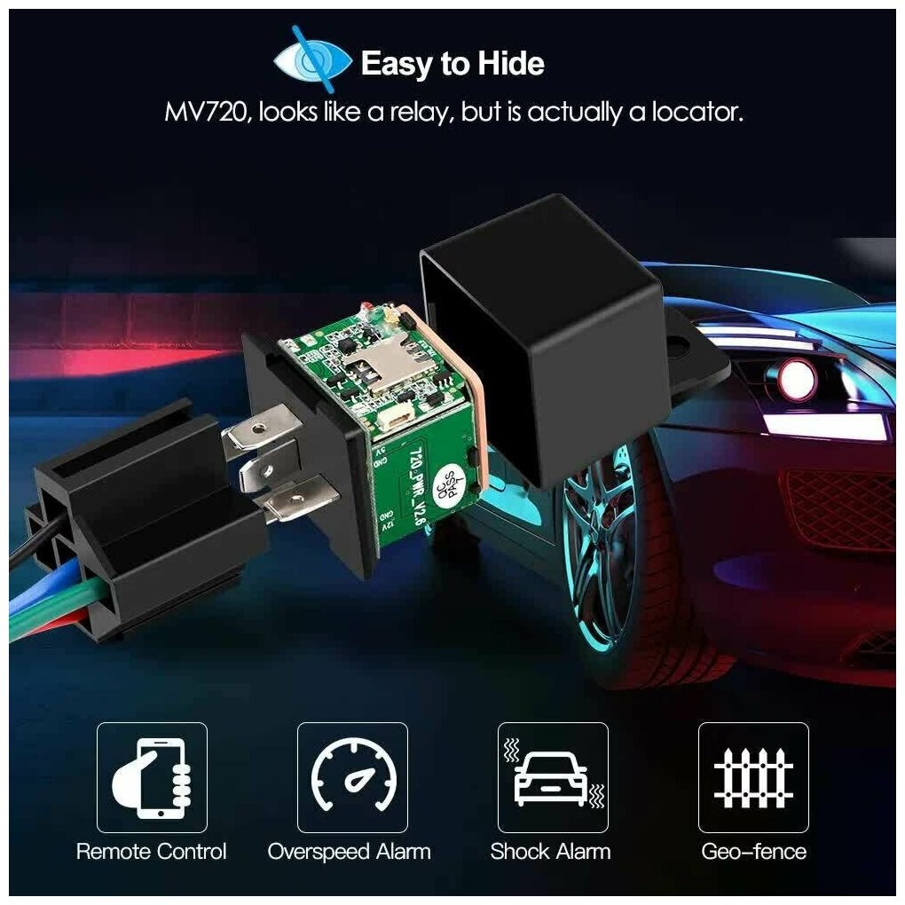 Purpose: automobile, location determination: GPS, GSM, built-in battery/battery, notification: GPRS