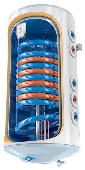 Type of water heater: accumulative, tank volume: 150 l, heating method: indirect, installation: wall-mounted, location: vertical, connection: from the side, inner lining of the tank: glass-ceramic, mains voltage: 220, depth: 490