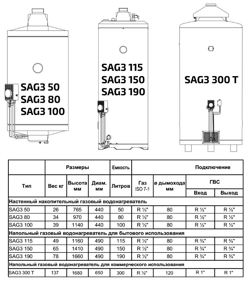 Water heater type: accumulative, tank volume: 50 l, heating method: gas, installation: wall-mounted, height: 765 mm