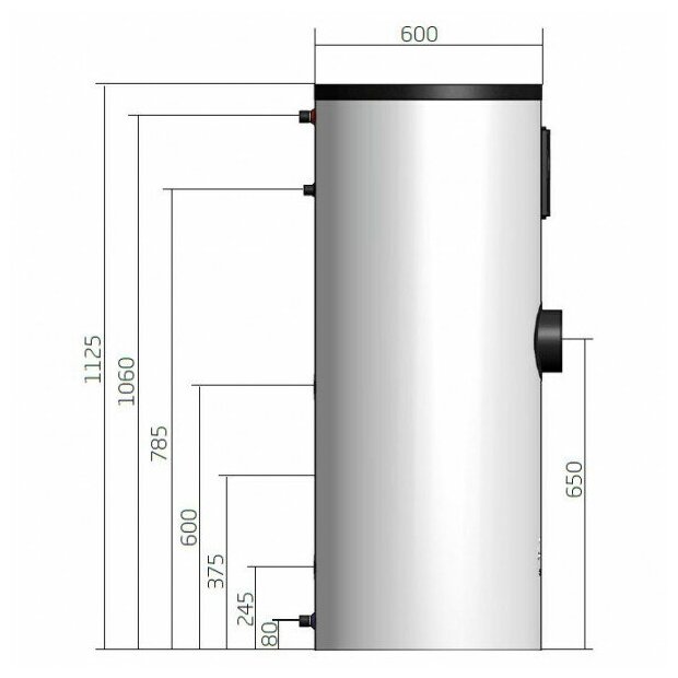The possibility of installing a heating element; maximum heat exchanger power: 35.4 kW; Max. water pressure: 8 atm; heating temperature limitation; recirculation line inlet