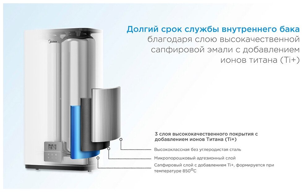 Reversible control panel, internal tank communication system, half-tank accelerated heating mode, security system, RCD on a cord