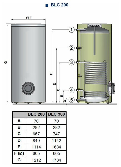 Type of water heater: accumulative, tank volume: 200 l, heating method: indirect, installation: floor, location: vertical, tank inner coating: enamel, depth: 610 mm, width: 610 mm, height: 1214 mm