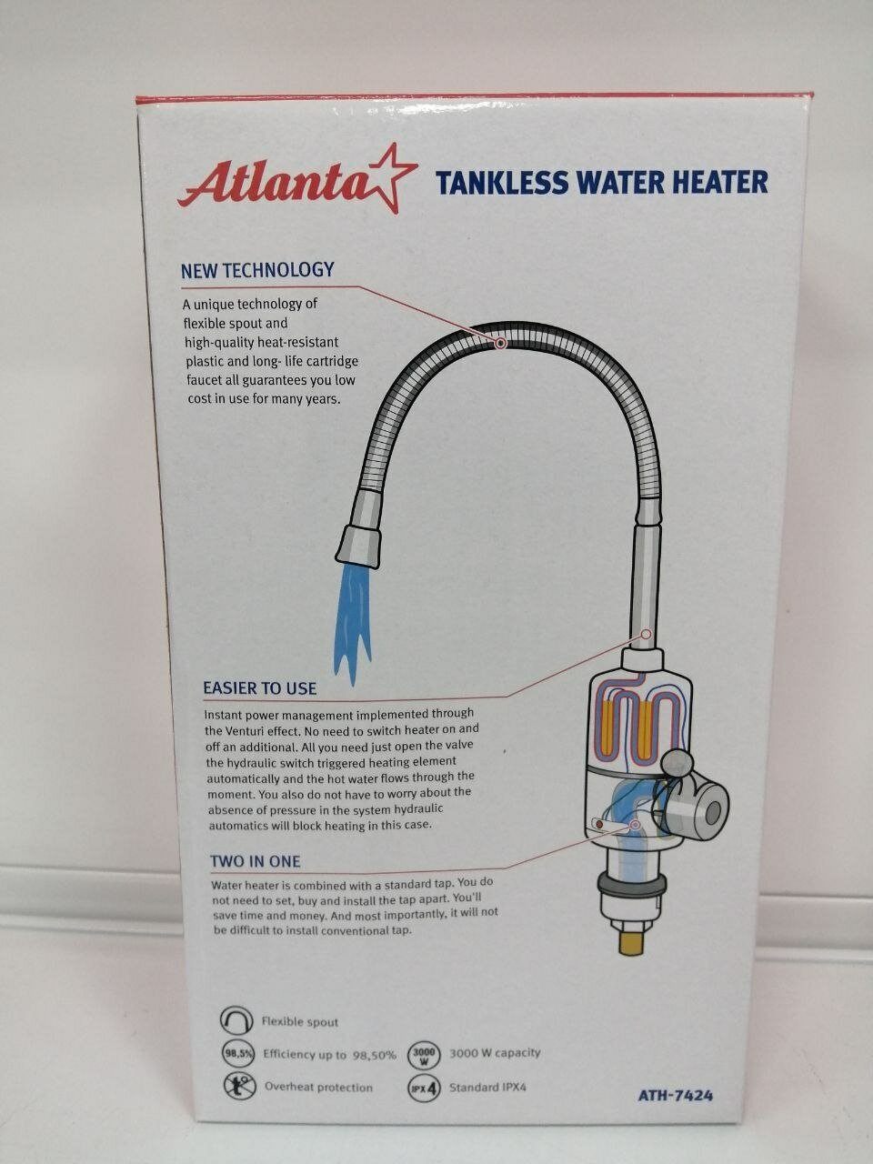 Type of water heater: heating tap, heating method: electric, installation: on a horizontal surface, vertical, location: vertical, connection: lower, mains voltage: 220, power consumption: 2 kW, g