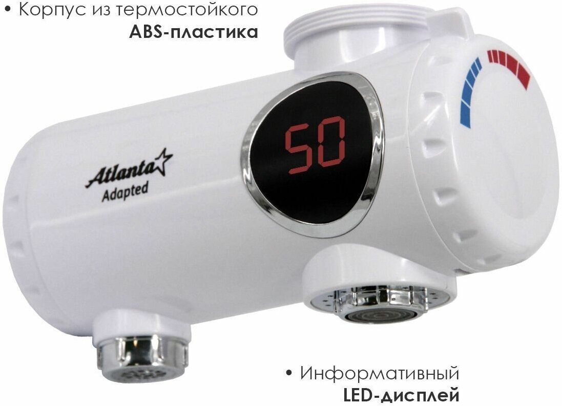 Total power of heating elements: 3 kW; min. water pressure: 0.3 atm; Max. water pressure: 4 atm; type of electric heating element: spiral; degree of protection against water: 4; flow electric control