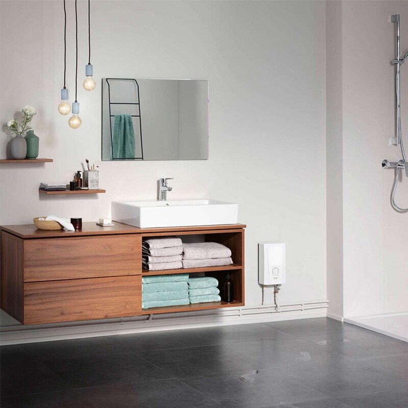 Water heater type: instantaneous, heating method: electric, installation: wall-mounted, location: vertical, connection: bottom, mains voltage: 220, power consumption: 8.80 kW, depth: 104 mm, width: 177 mm, height: 294