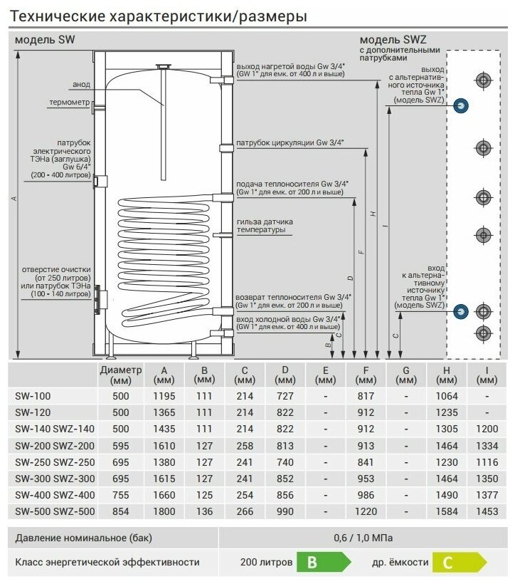 Water heater type: accumulative, heating method: indirect