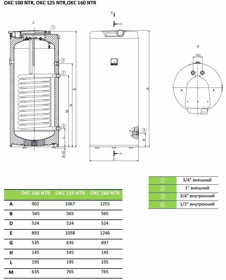 Type of water heater: accumulative, tank volume: 87 l, heating method: indirect, installation: floor, position: vertical, connection: top, side, internal coating of the tank: enamel, mains voltage: 220, consumed