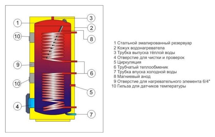 Maximum heat exchanger power: 62 kW; number of heat exchangers: 2; heat exchanger area: 2.5 m²; inlet of the recirculation line; circulation pump control thermostat