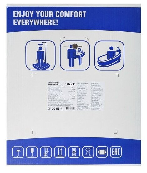 Heating element power 1: 1.5 kW; total power of heating elements: 1.5 kW; type of electric heating element: tubular; degree of protection against water: 4