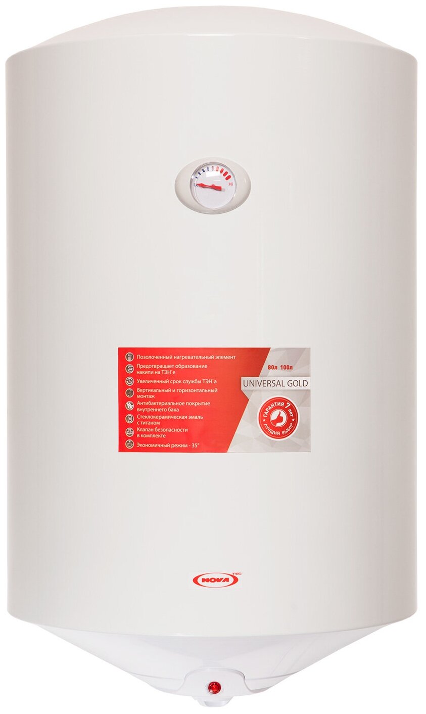 Type of water heater: accumulative, tank volume: 100 l, heating method: electric, installation: wall-mounted, location: vertical / horizontal, connection: bottom, internal coating of the tank: enamel, mains voltage: 2