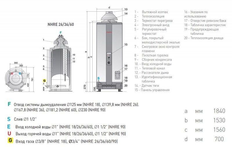 Max. water pressure: 8 atm; heating temperature limitation; ignition type: electric ignition