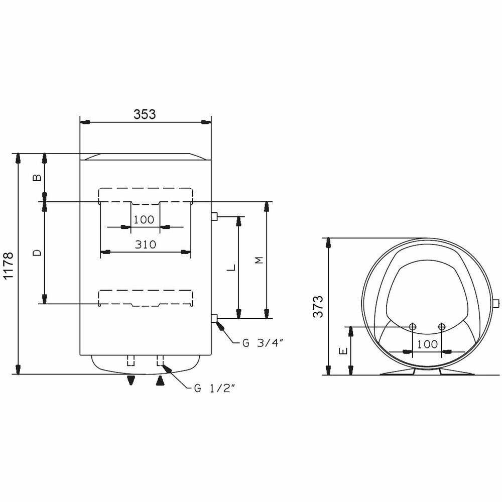 Type of water heater: accumulative, tank volume: 100 l, heating method: electric, installation: wall-mounted, position: vertical, connection: bottom, inner lining of the tank: glass-ceramic, mains voltage: 220, consumption