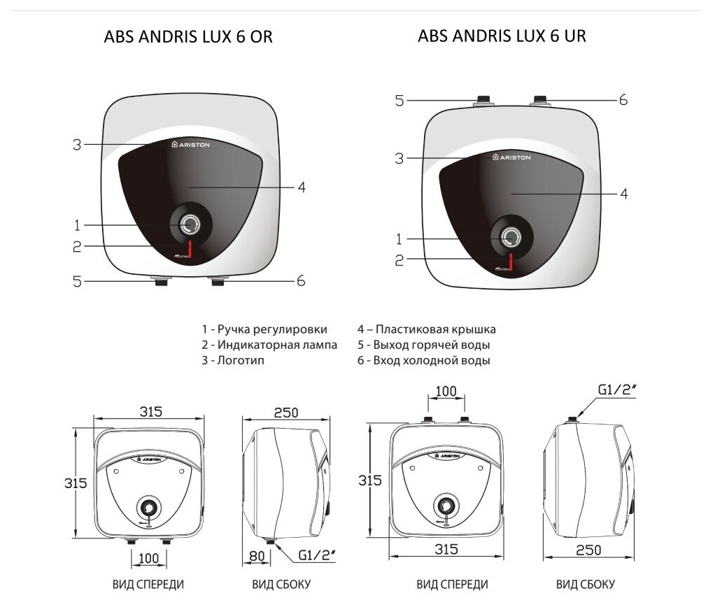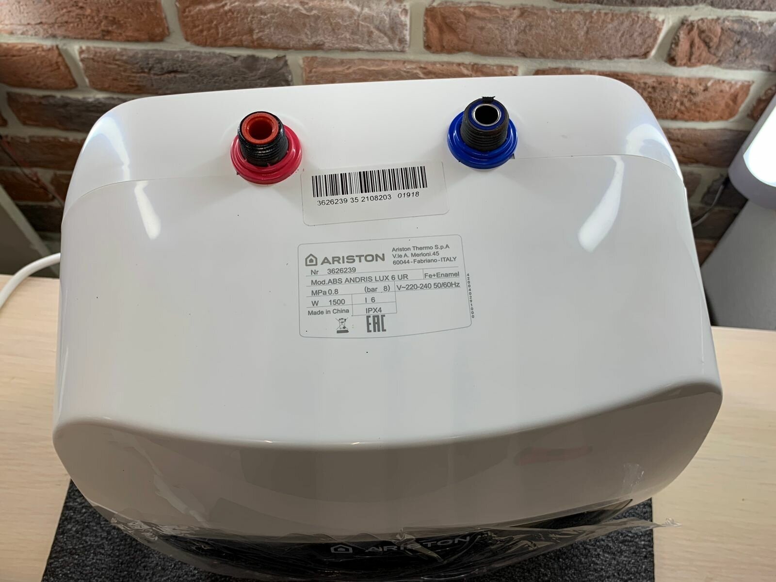 Description: Type of water heater: accumulative, tank volume: 6 l, heating method: electric, installation: wall-mounted, vertical, location: vertical, connection: bottom, inner tank coating: titanium enamel, voltage