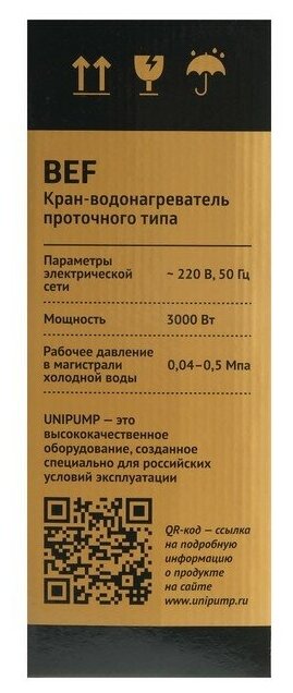 Type of water heater: heating tap, heating method: electric, installation: on a horizontal surface, location: vertical, mains voltage: 220, power consumption: 3 kW, depth: 250 mm, width: 120 mm, height