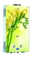 Water heater type: instantaneous, heating method: gas, installation: wall-mounted, location: vertical, connection: bottom, depth: 155 mm, width: 350 mm, height: 610 mm, control: mechanical, features: display, shower