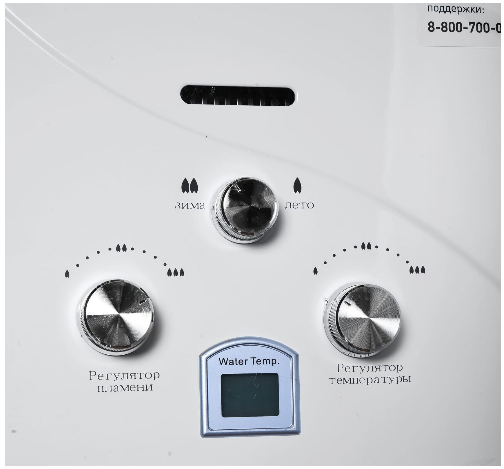 Regulator winter-summer; min. water pressure: 0.2 atm; Max. water pressure 7 atm; heating temperature limitation; heat exchanger material: copper; ignition type: electric ignition, chimney diameter: 110 mm