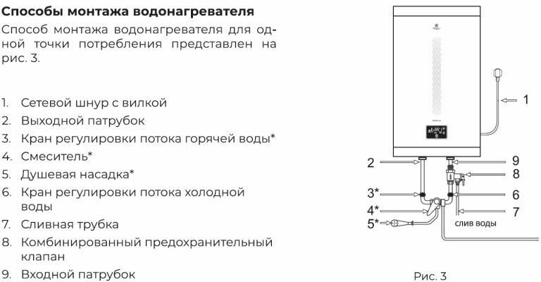 Type of water heater: accumulative, heating method: electric, installation: vertical position, wall mounting, connection: tap water, tank lining: GOLIATH stainless steel, mains voltage