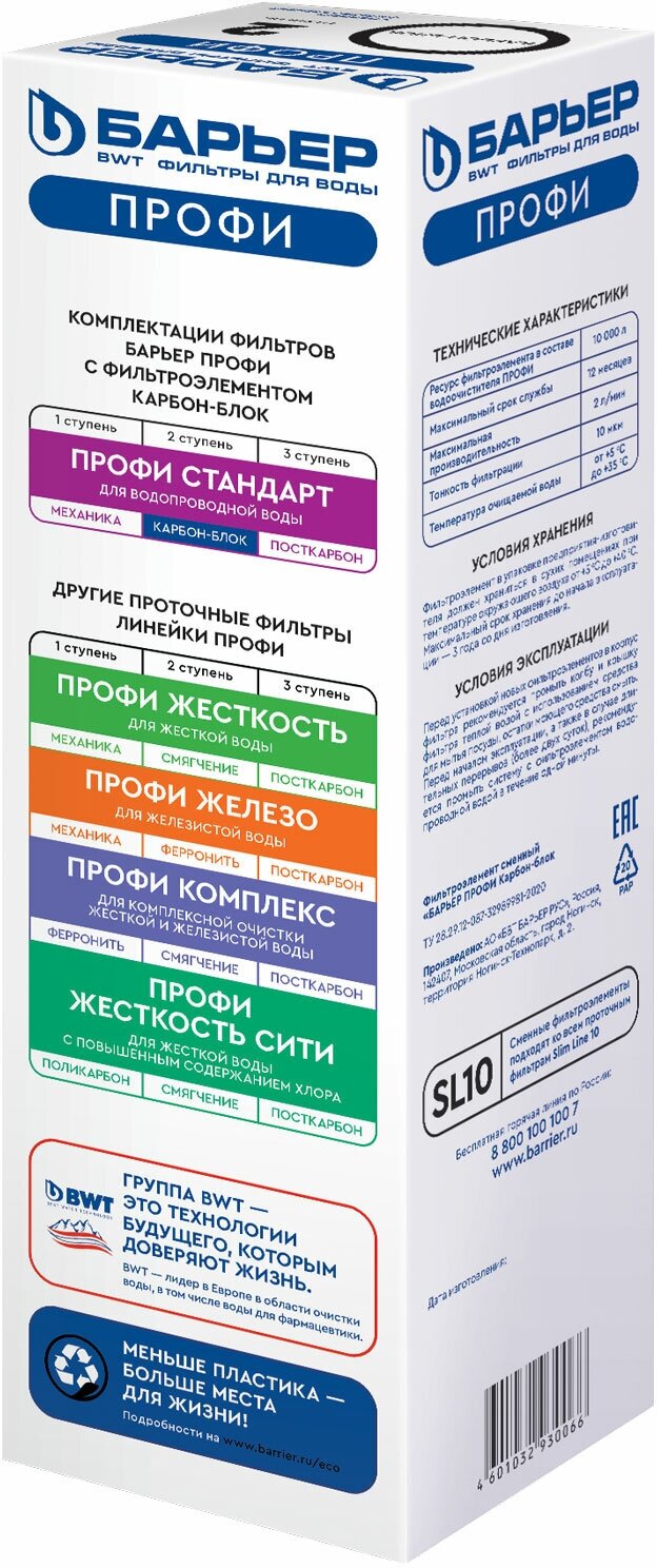 BARRIER Р121Р00 Cartridge for the filter under the sink Profi Carbon block, 1 pc.