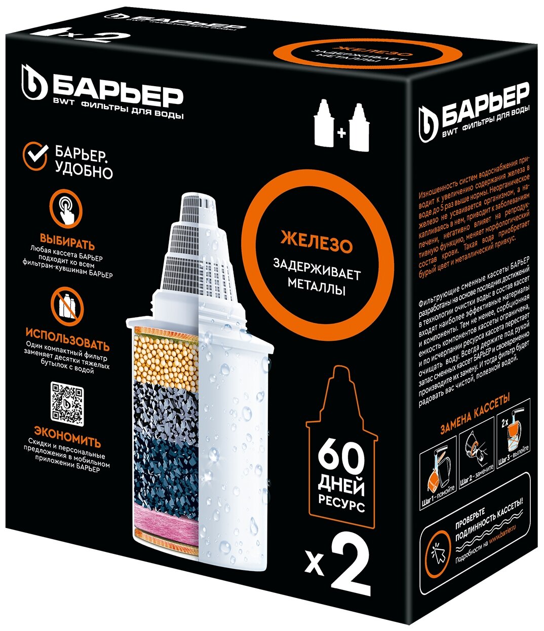 Type: cartridge, filter type: jug, capacity: 4 l/min, iron removal, activated carbon, filter element life: 350 l, maximum operating temperature: 40 °C, height: 60 mm, length: 60 mm, width: 140 mm, weight