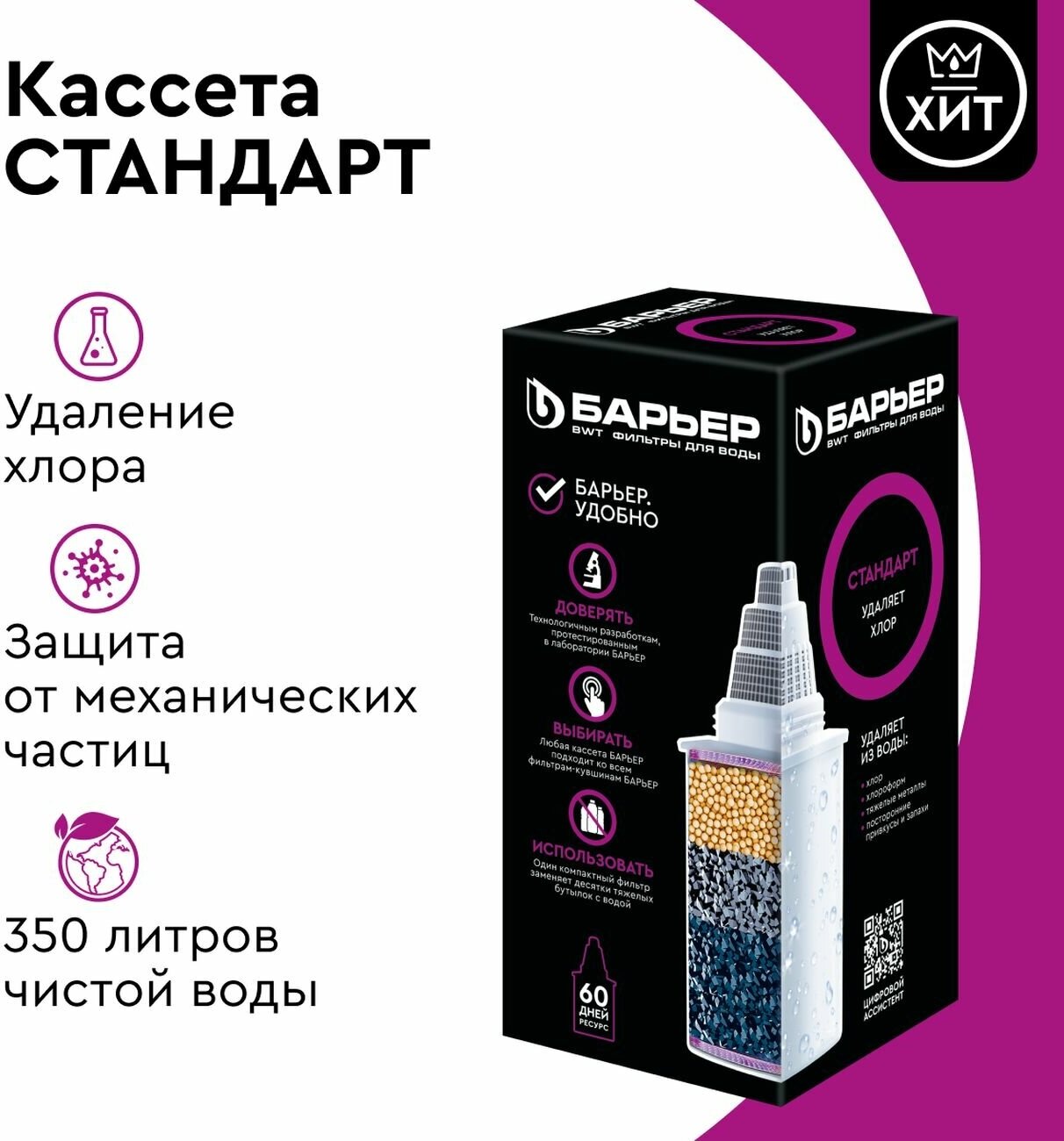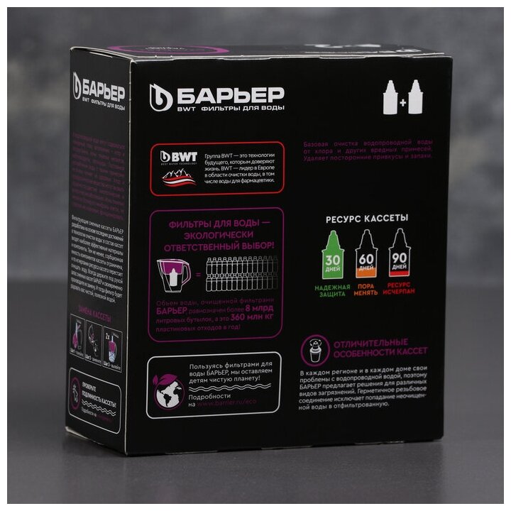 Type: cartridge, filter type: wash-down system, flow rate: 5.70 l/min, activated carbon, mechanical filtration, filter element life: 34000 l, maximum operating temperature: 38 °C, maximum working