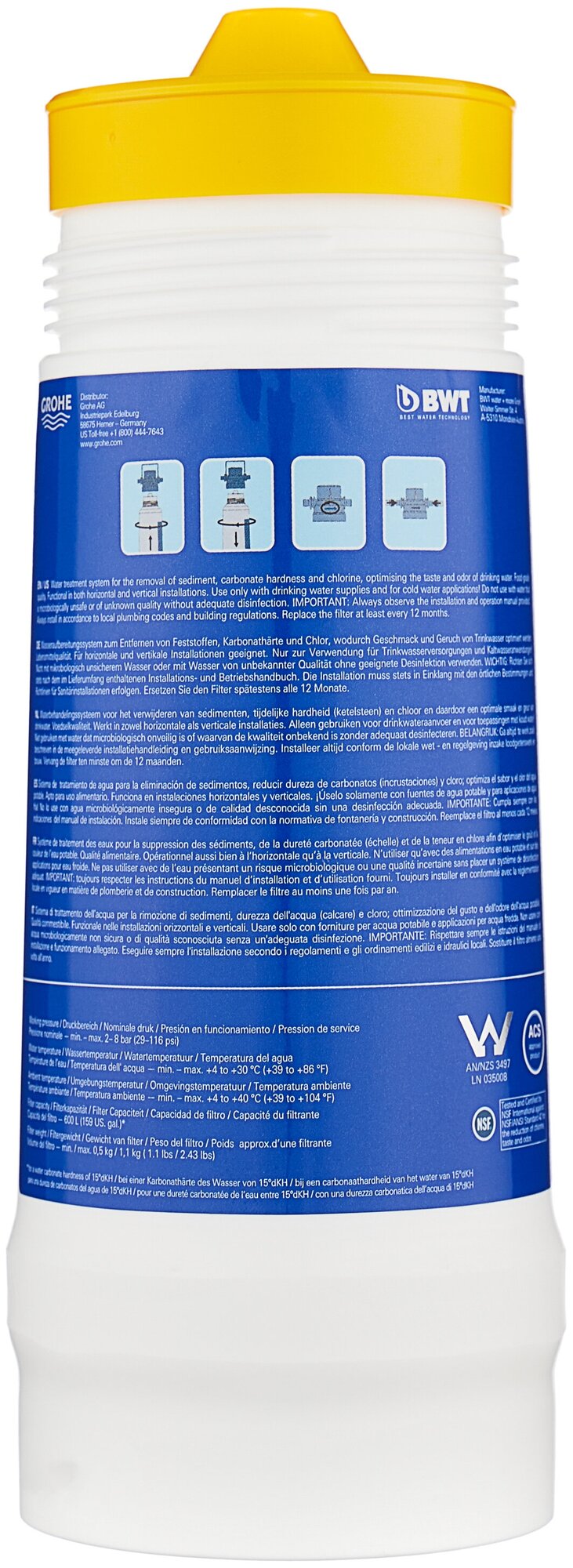 Type: cartridge, filter type: wash-down system, flow rate: 3 l/min, activated carbon, mechanical filtration, filter element life: 600 l, ion exchange, maximum operating temperature: 30 °C, max.