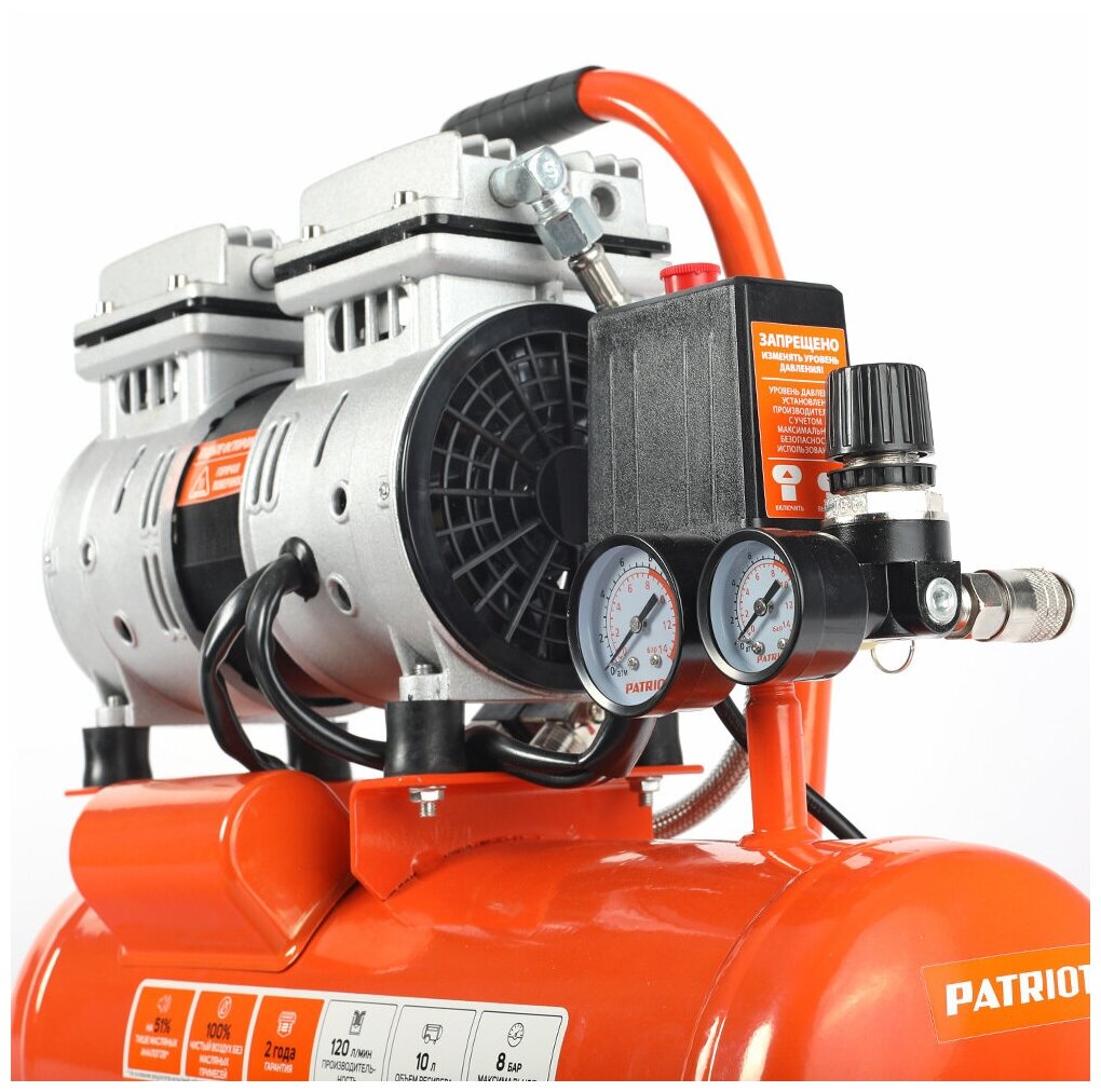 Patriot oil-free piston compressor WO 10-120, 120 l/min, 8 bar, 650 W, 10 l, quick-release 1/4"