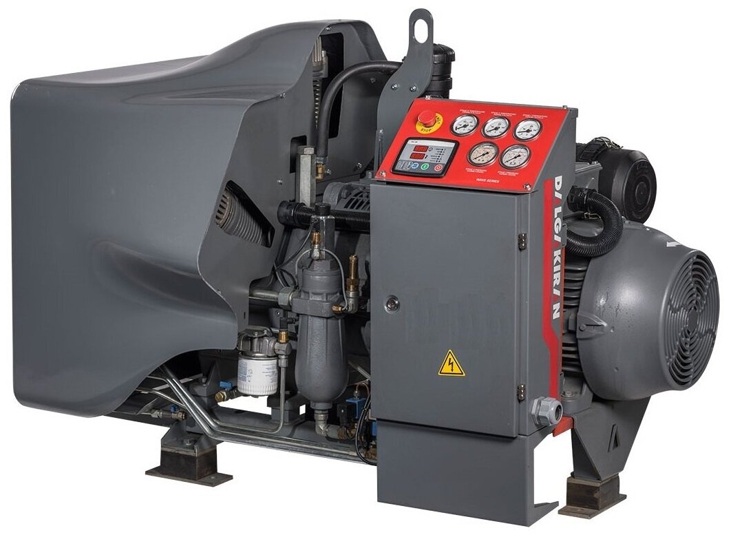Piston compressor, electric motor, oil, 37 kW, 50.32 hp, pressure 40 bar, capacity 3526 l/min, belt drive, number of compression stages: 3