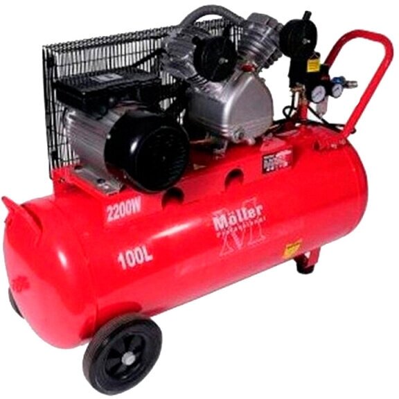 Piston compressor, electric motor, oil, 2.20 kW, 2.99 hp, pressure 8 bar, capacity 420 l/min, belt drive, reservoir volume 100 l, number of cylinders: 3