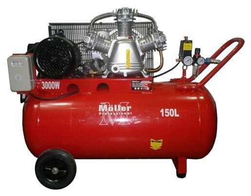 Piston compressor, electric motor, oil, 3 kW, 4.08 hp, pressure 8 bar, capacity 650 l/min, belt drive, receiver volume 150 l, number of cylinders: 3, number of posts: 2