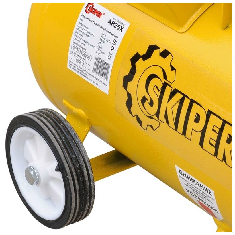 Piston compressor, electric motor, oil-free, 0.75 kW, 1.02 hp, pressure 8 bar, capacity 135 l/min, coaxial direct drive, receiver volume 25 l, number of cylinders: 2, number of stations: 1