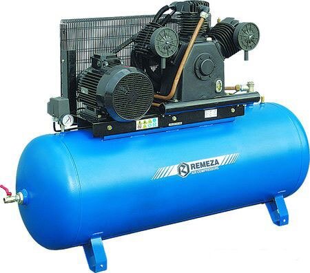 Piston compressor, electric motor, oil, 7.50 kW, 10.20 hp, pressure 16 bar, capacity 800 l/min, belt drive, receiver volume 500 l, number of cylinders: 3, number of compression stages: 3, number of posts: 4