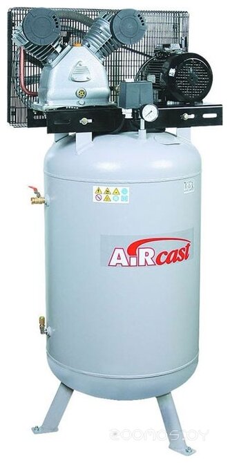 Piston compressor, electric motor, oil, 3 kW, 4.08 hp, pressure 10 bar, capacity 580 l/min, belt drive, reservoir volume 100 l, number of cylinders: 3, number of compression stages: 3, number of posts: 4