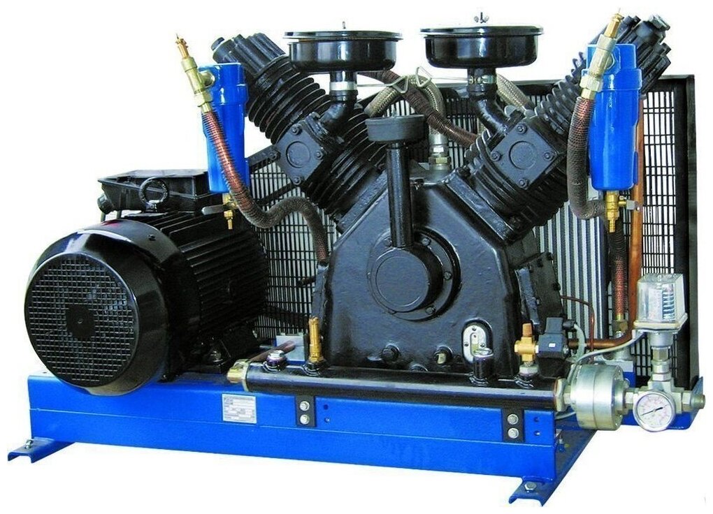 Piston compressor, electric motor, oil, 15 kW, 20.40 hp, pressure 40 bar, belt drive