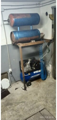 Piston compressor, electric motor, oil, 2.20 kW, 2.99 hp, pressure 10 bar, capacity 420 l/min, belt drive, reservoir volume 50 l, number of cylinders: 2, number of compression stages: 1