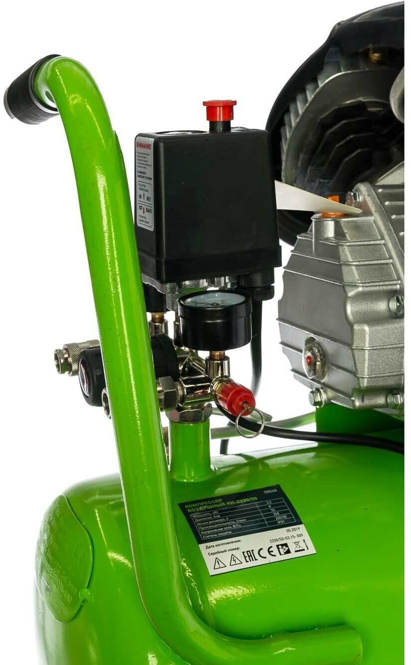 Equipment: air compressor, wheel with fasteners - 2 pcs., vibration support with fasteners - 2 pcs., air filter - 2 pcs., breather, operation manual, warranty card; compressor - 1 piece; air filters - 1 pc; wheels - 1 pc