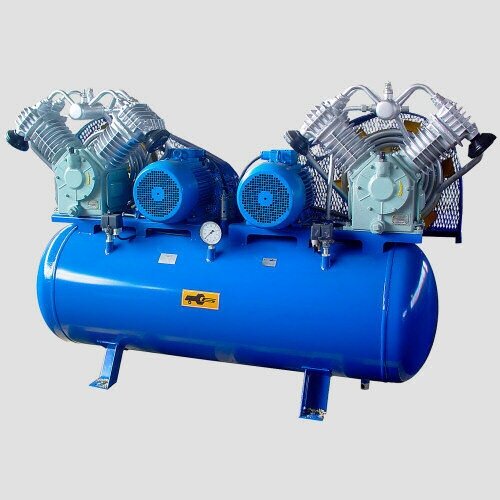 Piston compressor, electric motor, oil, 22 kW, 29.92 hp, pressure 10 bar, capacity 2200 l/min, belt drive, receiver volume 500 l, number of cylinders: 4, number of compression stages: 2, number of posts: 1, type co