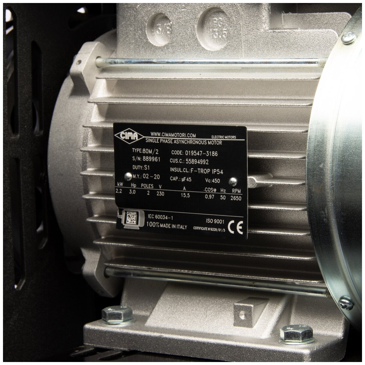 Piston compressor, electric motor, oil, 1.50 kW, 2.04 hp, pressure 10 bar, capacity 400 l/min, belt drive, reservoir volume 100 l, number of cylinders: 2, number of compression stages: 1, connection type: rapid