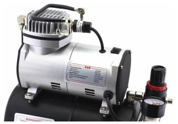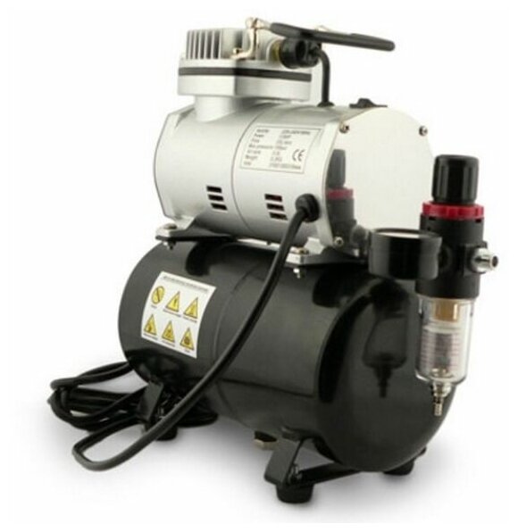 Piston compressor, electric motor, oil-free, 0.15 kW, 0.20 hp, pressure 3.90 bar, capacity 23 l/min, receiver volume 3 l