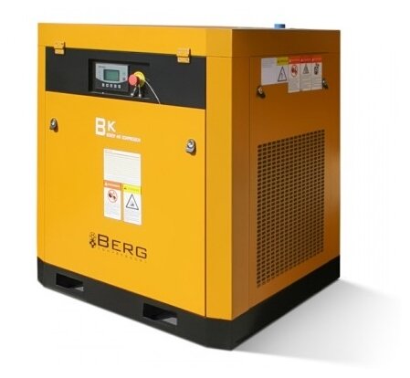 Screw compressor, electric motor, oil, 15 kW, 20.40 hp, pressure 8 bar, capacity 2300 l/min, coaxial direct drive, frequency converter