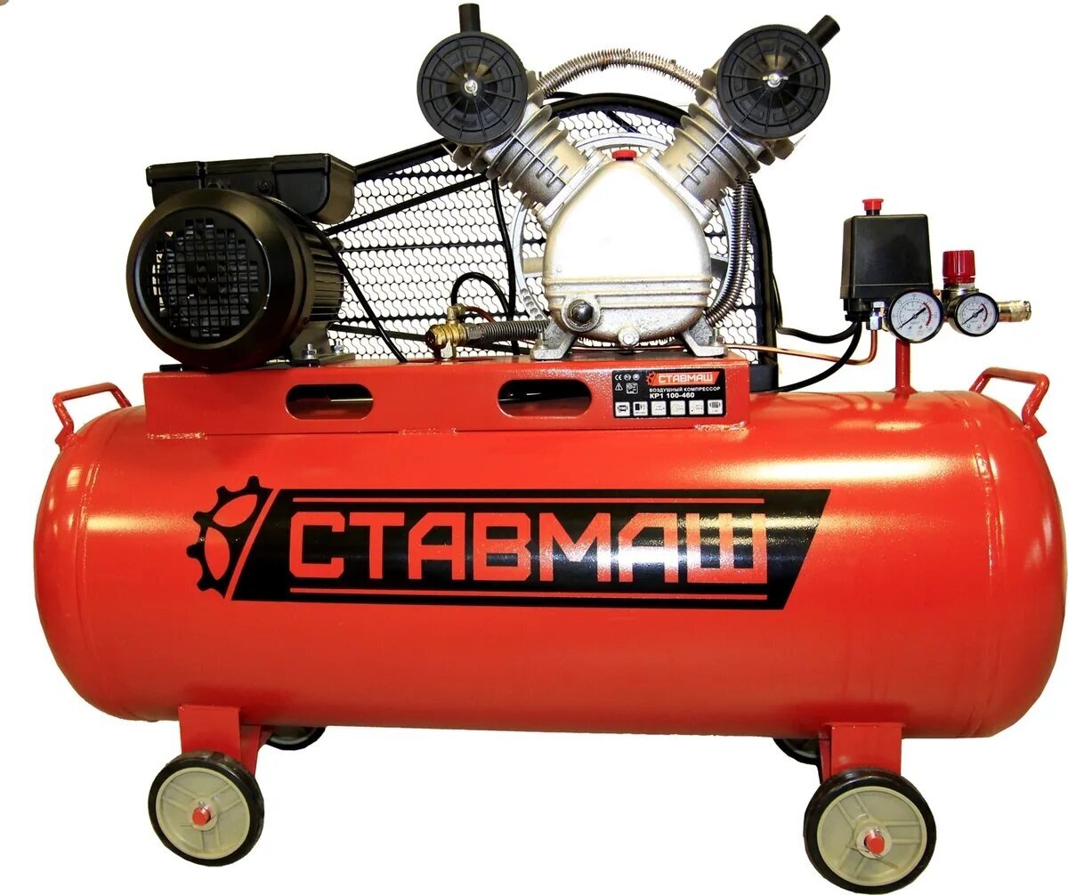 Piston compressor, electric motor, oil, 3 kW, 4.08 hp, pressure 8 bar, capacity 450 l/min, belt drive, reservoir volume 100 l, number of cylinders: 2, number of compression stages: 1