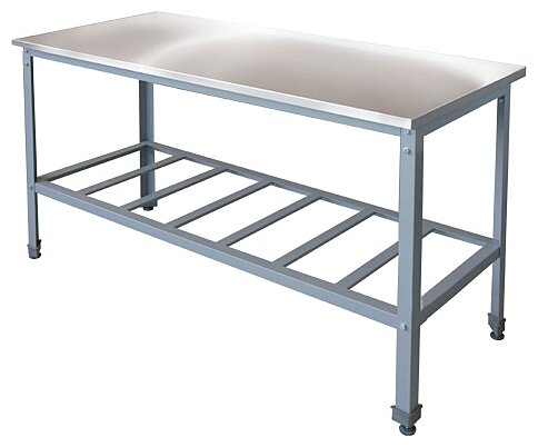 The frame is made of galvanized steel, the tabletop is made of AISI 430 stainless steel 0.5 mm thick with chipboard reinforcement